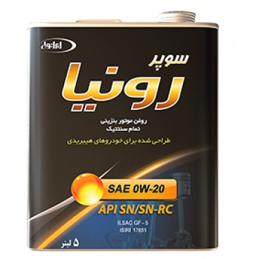 ایرانول سوپر رونیا روغن موتور با کارایی بالا و با استفــاده از روغن پایهی تمام سینتتيک گزینش شده و مواد افزودنی مرغوب، برای تمام موتورهای بنزینی در اتومبیل های سواری و خودروهای ون سبک است، جهت استفاده در تمامی فصول و شرایط آب و هوایی ایران تولید گردیدهاست.