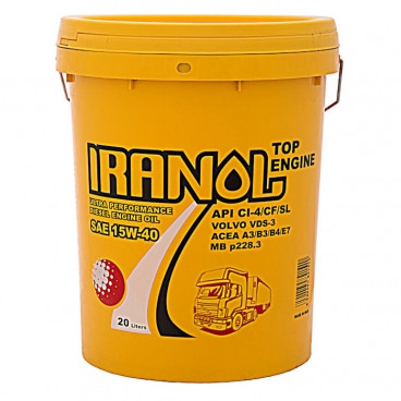 ایرانول Top Engine با استفــاده از روغن پایهی گزينش شده و مواد افزودنی بسيار مرغوب، جهت مصرف در جديدترين مدلهاي موتورهای دیزلی سنگین به منظور استفاده در تمامی فصول و شرایط آب و هوایی ایران تولید گردیدهاست.